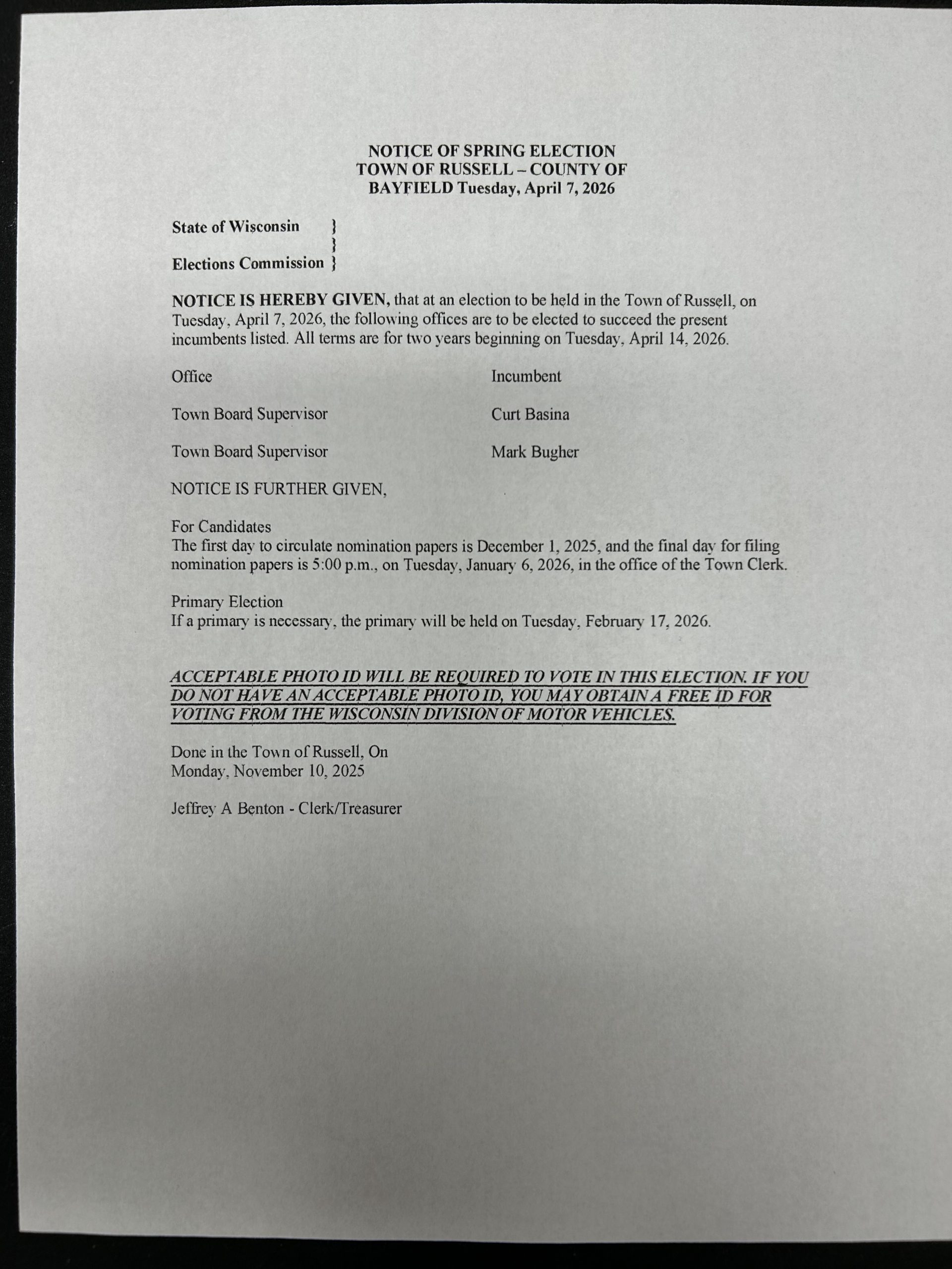 Posted on December 8, 2025, Edited December 8, 2025 by Jeffrey Benton Notice of Spring Election Notice of Spring Election and expiring term